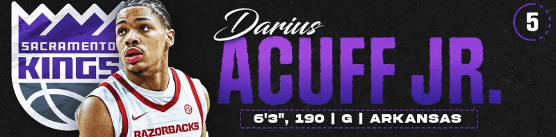 萨克拉门托国王的年轻球员们近期取得的胜利,已将他们推离了乐透状元概率榜的榜首位置,但在前四顺位几乎尘埃落定之后,他们仍然获得了第五顺位。国王拥有大量双能卫,却没有真正的控卫来长期解决球队位置上的缺失(即使拉塞尔·威斯布鲁克回归,考虑到他职业生涯进入末期,也算不上球队未来的控卫人选)。现在,小达里厄斯·阿卡夫来了,他充满活力的得分和灵动的传球,将立即为这支三分命中率和出手数均排名垫底的国王带来巨大提升。由马克西姆·雷诺和迪伦·卡德维尔组成的新秀二人组,将能充分利用阿卡夫为队友创造机会的能力。尽管阿卡夫的防守仍令人担忧,但他为国王在进攻端解决的问题实在太多,让他们无法在这个顺位错过他。