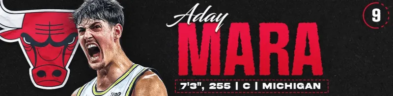 公牛在本次选秀中用他们的首轮签选中了西班牙大个子阿达伊·马拉。本赛季,马拉的内线防守表现出色,帮助密歇根大学打入全国冠军赛。在本届参选的大个子球员中,马拉是进攻技巧、球场感觉和护筐能力结合得最好的球员,他的真实命中率达到66%,助攻率19%,盖帽率12%。公牛在告别卡尼索瓦斯与埃弗斯利后,似乎正面临重大变革。在这一未来尚明的过渡期,马拉为公牛提供了一个具备高球商且攻防兼备的内线基石,可以与马塔斯·布泽利斯和约什·吉迪共同成长。
